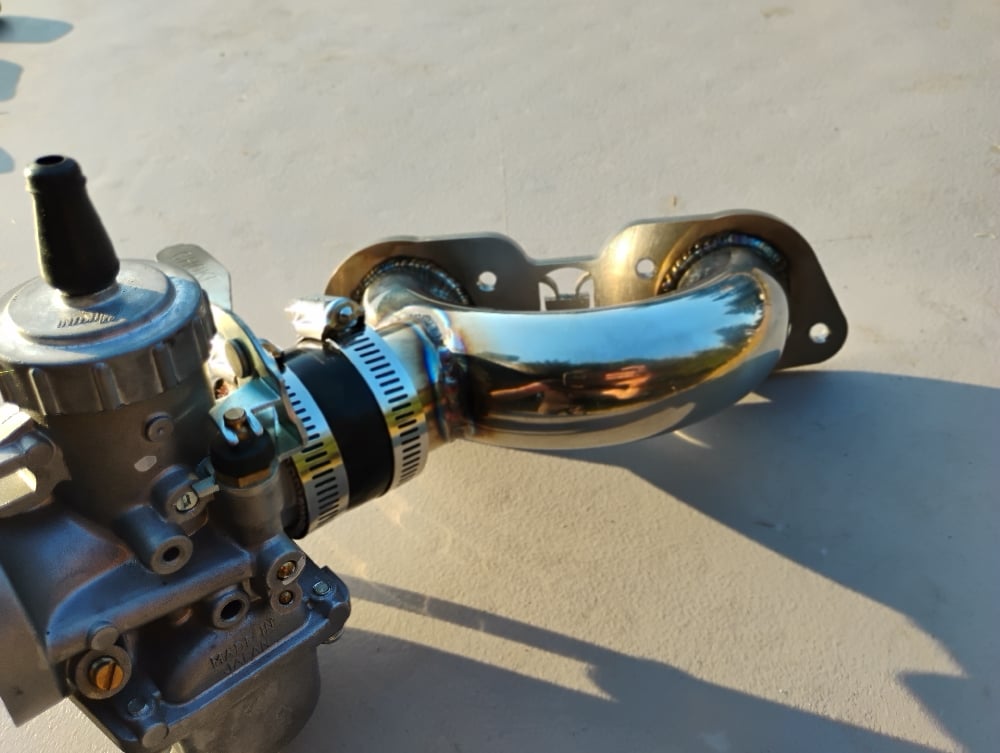 These 2 into 1 intakes are designed to be used with Mikuni VM34 or VM36 carburetors. Quality laser cut flanges, Back purged and Tig welded. Handmade in the USA in Washington State.